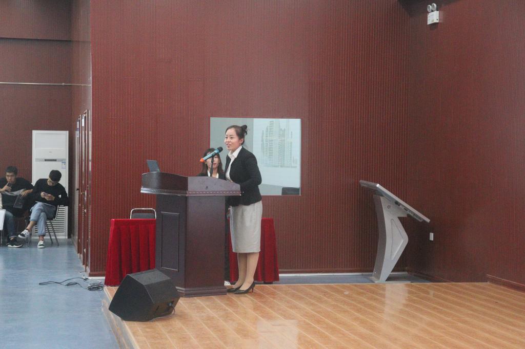大会第四项机械与动力工程学院副书记王莹老师为大家简单介绍了教职工老师的成员,首先王莹老师为2020届新生的到来表示欢迎,第一介绍的是2020届研究生辅导员谷精华老师,主要负责研究生思想政治工作、思想教育与疏导、研究生干部培养、协助负责党建、日常行为管理等工作,其次介绍了刘佳欢老师等辅导员老师,最后希望我们2020届研究生努力学习,顺利完成学业。
