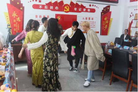 活动中,机制1801班的扎西次旦带来藏族歌曲《我们是一家人》和汉语歌《爱的部落》,其他藏族同学带来舞蹈«忙康弦子»。老师们为藏族学生们分发月饼,藏族学生们为老师们献上了代表祝福的哈达,在欢声笑语中,师生情谊浓浓传递。