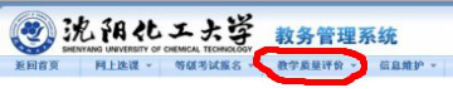 登录“沈阳化工大学”主页:www.syuct.edu.cn ,点击“组织机构”,进入教务处主页,点击“教务系统(学生用)”出现下面界面,输入学号、密码登录后,点击下图“教学质量评价”,即可评教。