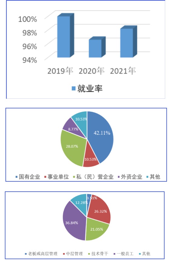 专业学生就业率每年均在96%以上,就业单位多为国有企业和事业单位,专业学生受到就业单位的一致好评。