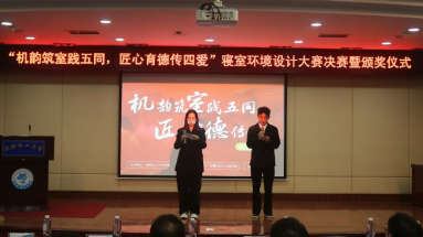 11月26日,机械与动力工程学院在图书馆学术报告厅隆重举行“机韵筑室践五同,匠心育德传四爱”寝室环境设计大赛暨颁奖仪式。沈阳化工大学党委学生工作部德厚材老师、机械与动力工程学院辅导员代表以及计算机科学与技术学院研究生辅导员代表出席仪式,全校各学院学生代表齐聚现场,共同见证决赛的精彩对决与颁奖盛况。活动紧扣“学在化大、干在化大”核心导向,深化“五同共育”“四爱践行”主题教育,以专业赋能寝室空间,让育人内涵浸润日常生活。